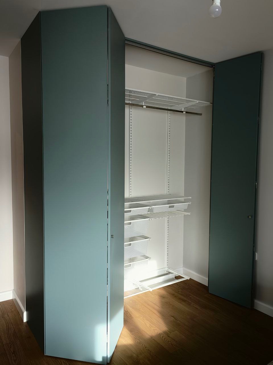 Titan-GS и WingLine: гардеробная система со складными дверьми в нише